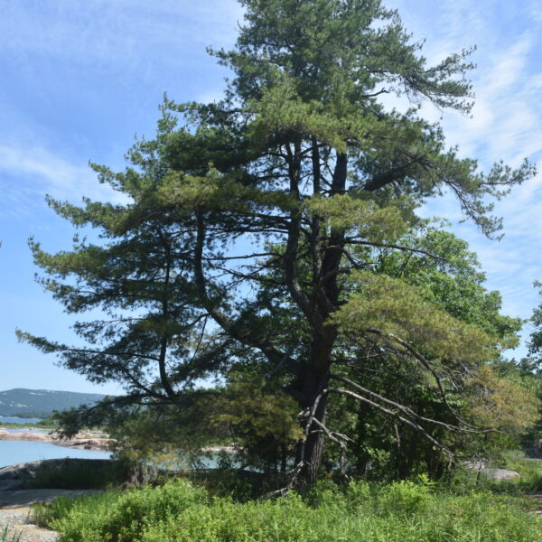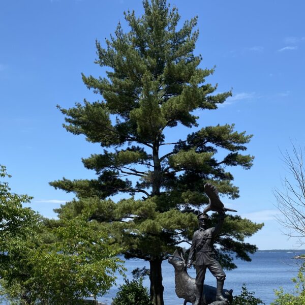 - This is a beautiful Eastern white pine which stands overlooking Georgian Bay. The Eastern white pine is deeply rooted in Ontario's history, playing a big role in the province's development and ecology. It was crucial for shipbuilding in the 1800s, and later for construction and other industries. Georgian Bay is known for beautiful granite outcrops and white pines which have been molded by the westerly winds. This pine is still quite young, but is tall and straight, which would have been perfect for the shipbuilding of the past. We are fortunate to have this on protected lands and beside the Parry Sound waterfront trail so that everyone can enjoy it. The statue is of local indigenous man, Francis Pegahmagabow (1889-1952) who was a highly-effective sniper and scout in the First World War, and his military service and passionate advocacy for Indigenous rights continue to be an inspiration to his Anishnaabe community.