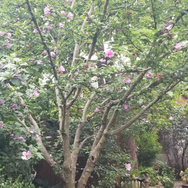- A beautiful tree, although technically not a tree, but a rose of Sharon. This wonderful tree is a hub of activity, bees, birds, squirrels alike love the flowers for eating and pollinating.