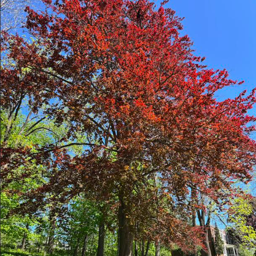 - This Tri-colour beech is the crown jewel of the street with it's velvety soft, richly coloured leaves. Pedestrians are frequently stopped admiring this beauty, snapping pictures, touching the fuzzy leaves, and oohing at the graceful branches fluttering over their heads. But beauty is deeper than the skin, or in this case the leaves. I received this tree as a father's day gift from my lovely five children. They helped select it with my wife whose father had a similar tree in his Windsor yard. Now here in Toronto - this tree is a reminder of the love of my children, the memory of a well loved father (in-law), and the wonder of passer-byes who can bask in it's triple red canopy.
