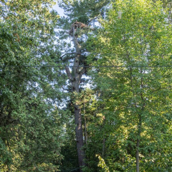 A pair of Bald Eagles chose to nest in this tree some years ago; a celebrated rarity in the area. Interestingly, these eagles do not migrate and spend time adding sticks to their nest year-round, protecting "their tree" from any curious interlopers.